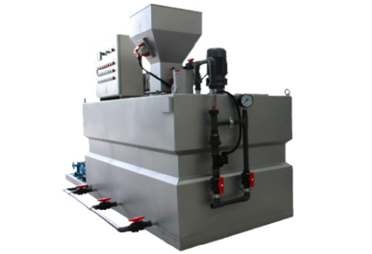 三廂式全自動加藥裝置由供水系統、干粉投加系統、溶解熟化系統、控制系統、液體投加系統構成。三 廂式全自動加藥裝置是一個智能化、全自動、連續式一體化的絮凝劑溶配及投藥裝置,配制溶液濃度一般為0.1%-0.5%。