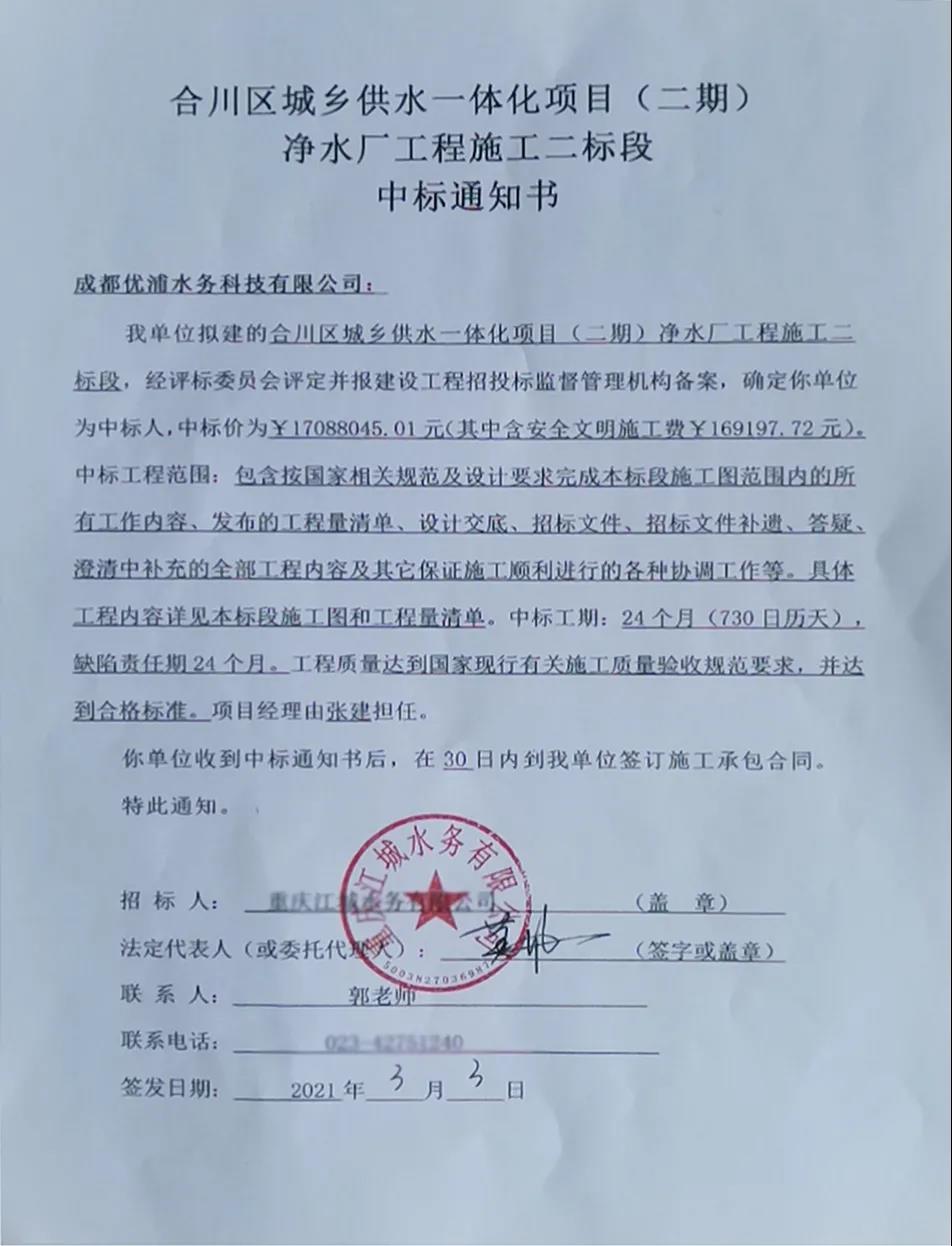 | 新年開(kāi)門紅,祝賀優(yōu)浦水務(wù)又中標(biāo)一體化設(shè)備大項(xiàng)目 |