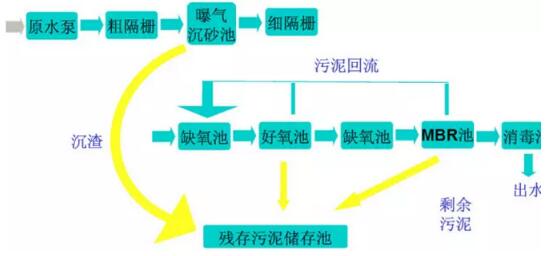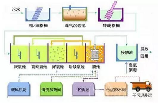 注意:對滿足更為嚴格的出水標準,對A+MBR工藝進行不同工藝組合工藝再此不做分享。分享一組合工藝流程供大家參考。